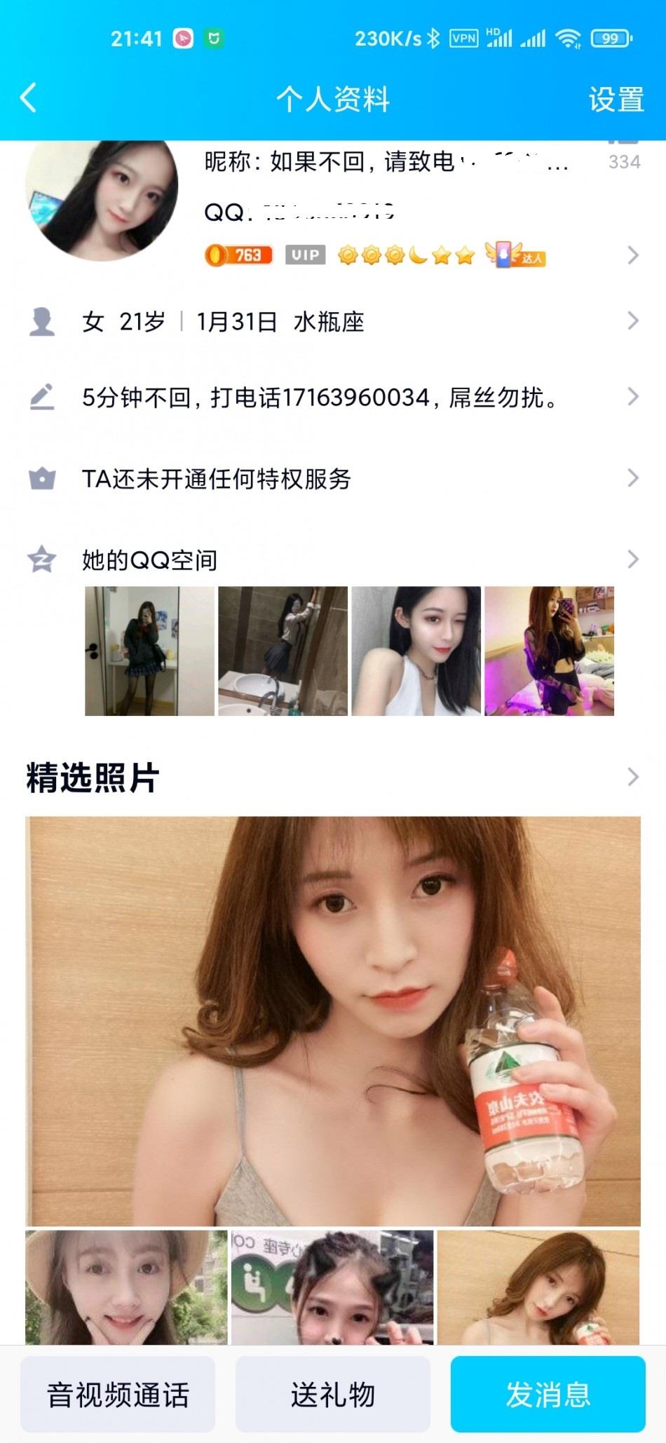 年纪确实小,比较紧致当天下午有点难耐,于是找个兄弟问了下,给我推荐了一个。先加qq,空间里有几个照片